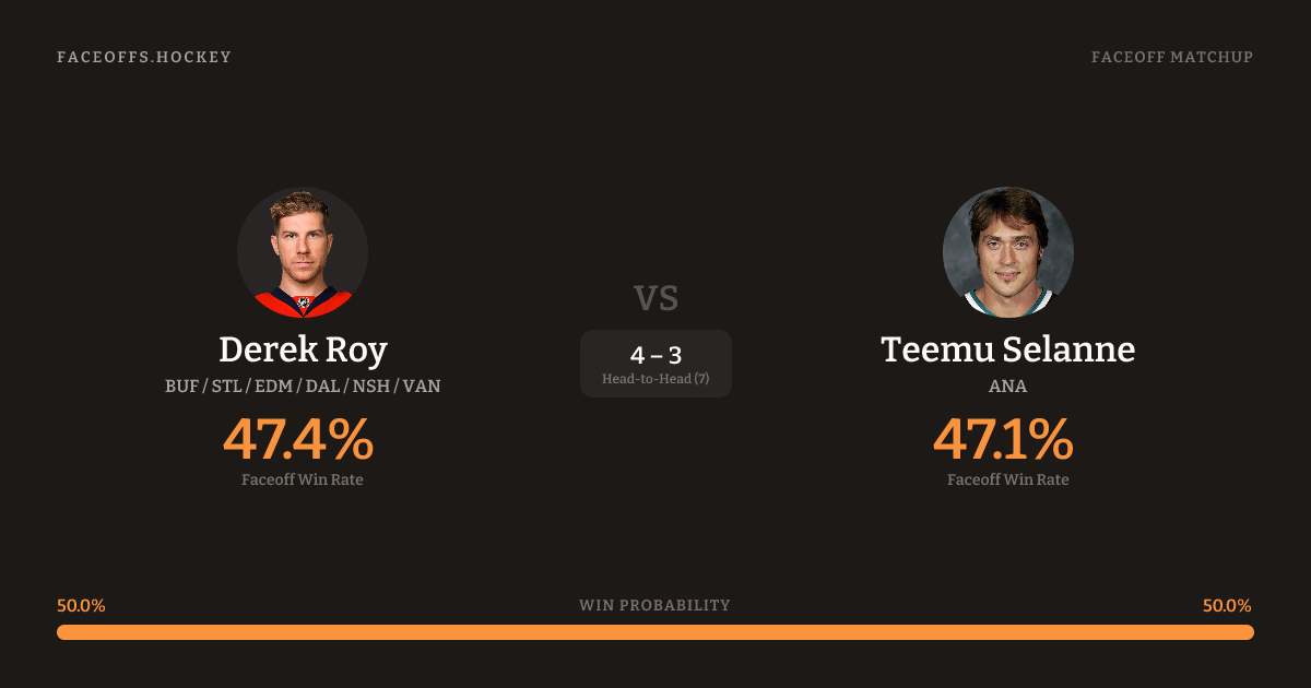 Derek Roy vs Teemu Selanne — Faceoff Head-to-Head