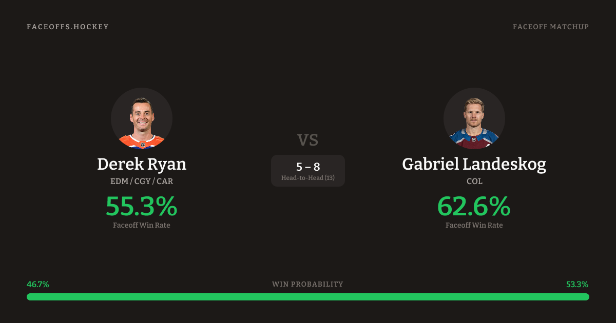 Derek Ryan vs Gabriel Landeskog — Faceoff Head-to-Head