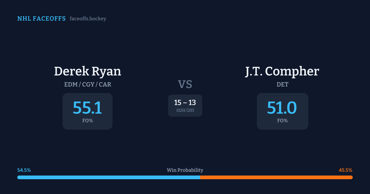 Derek Ryan vs J.T. Compher — Faceoff Head-to-Head