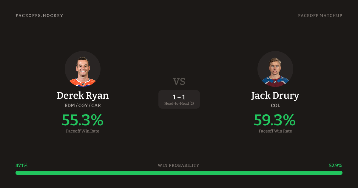 Derek Ryan vs Jack Drury — Faceoff Head-to-Head