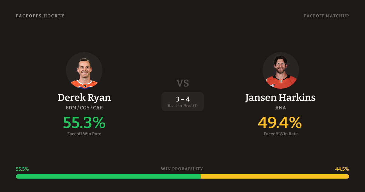 Derek Ryan vs Jansen Harkins — Faceoff Head-to-Head