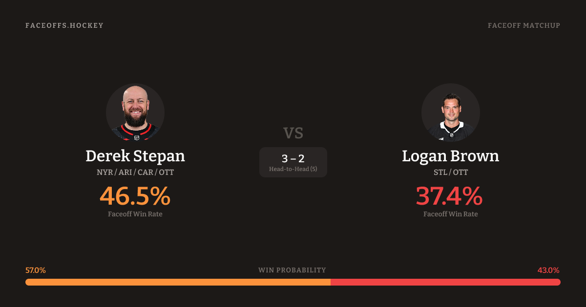 Derek Stepan vs Logan Brown — Faceoff Head-to-Head