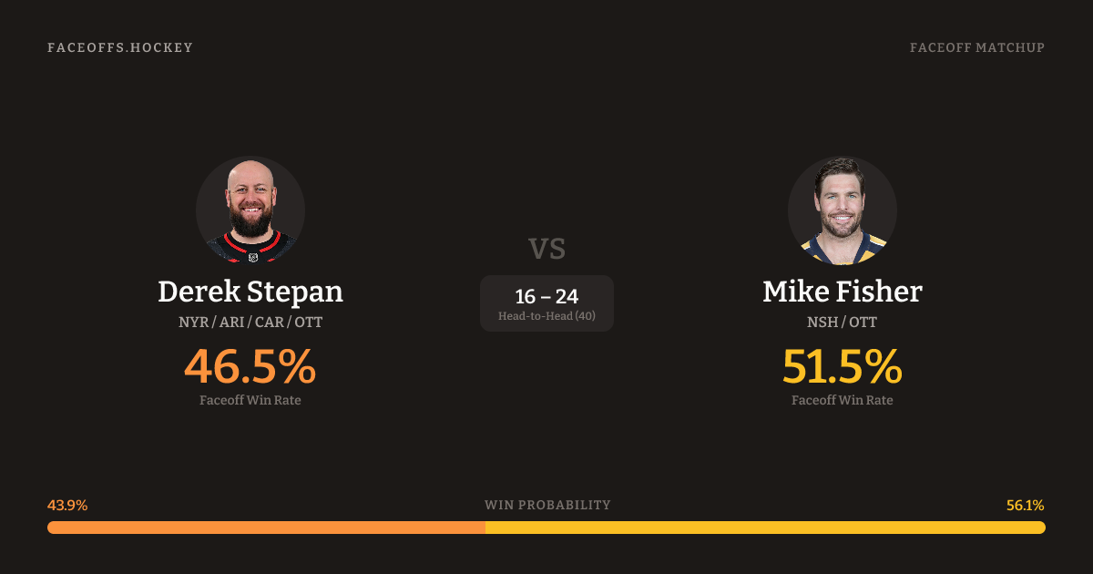 Derek Stepan vs Mike Fisher — Faceoff Head-to-Head