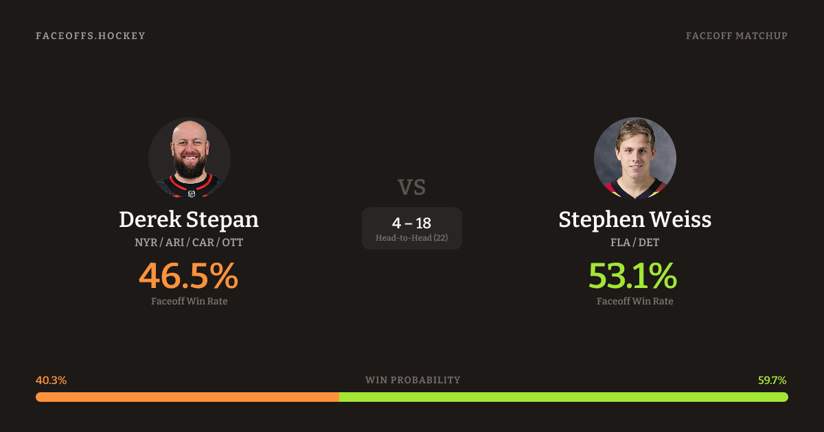 Derek Stepan vs Stephen Weiss — Faceoff Head-to-Head
