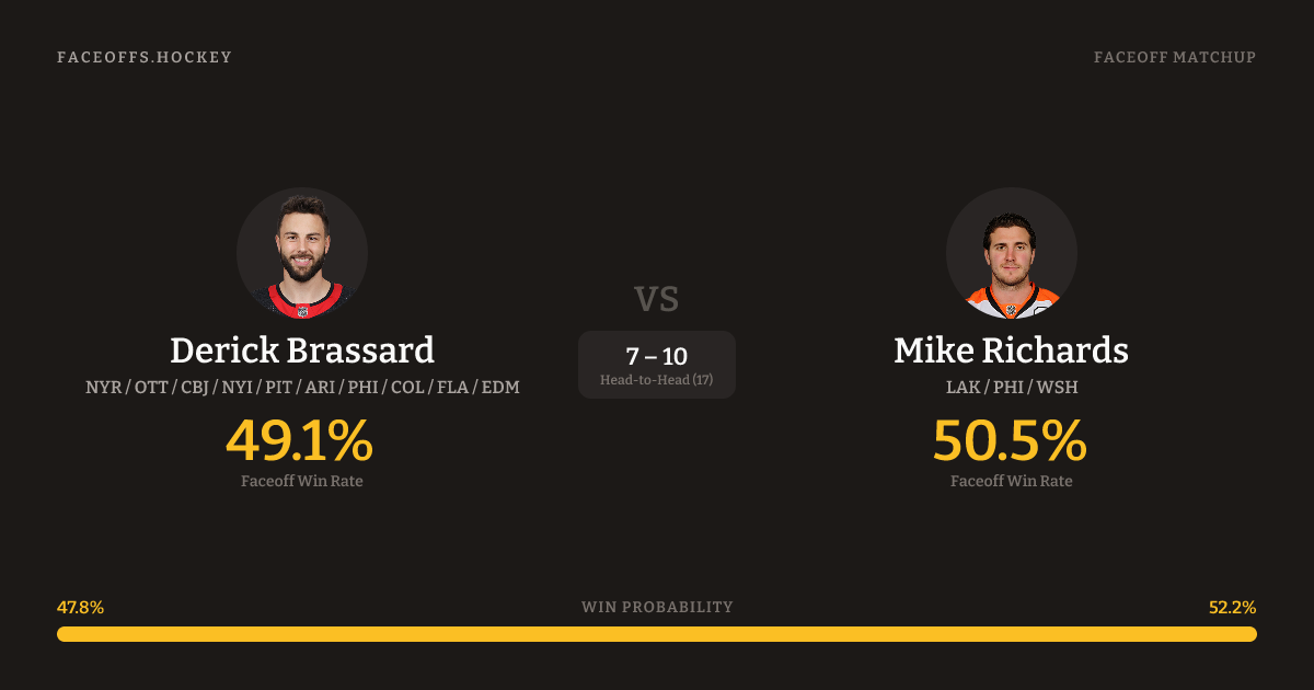 Derick Brassard vs Mike Richards — Faceoff Head-to-Head