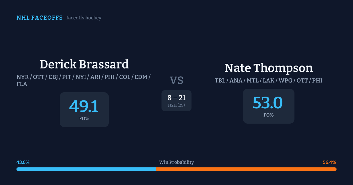 Derick Brassard vs Nate Thompson — Faceoff Head-to-Head
