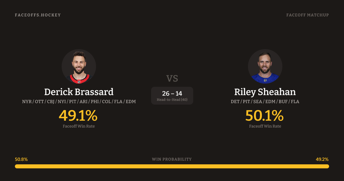 Derick Brassard vs Riley Sheahan — Faceoff Head-to-Head