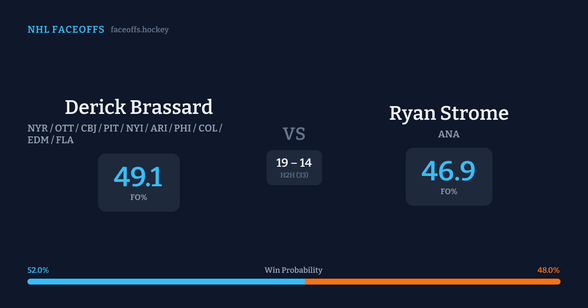 Derick Brassard vs Ryan Strome — Faceoff Head-to-Head