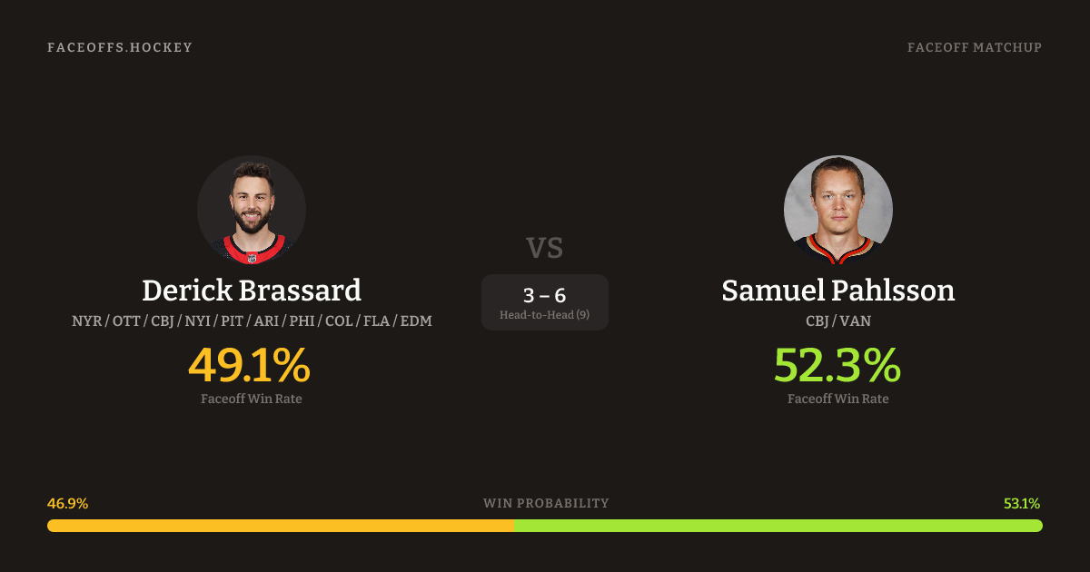 Derick Brassard vs Samuel Pahlsson — Faceoff Head-to-Head