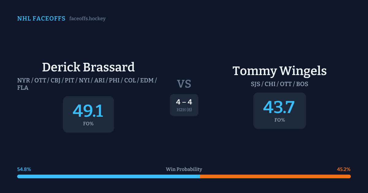 Derick Brassard vs Tommy Wingels — Faceoff Head-to-Head
