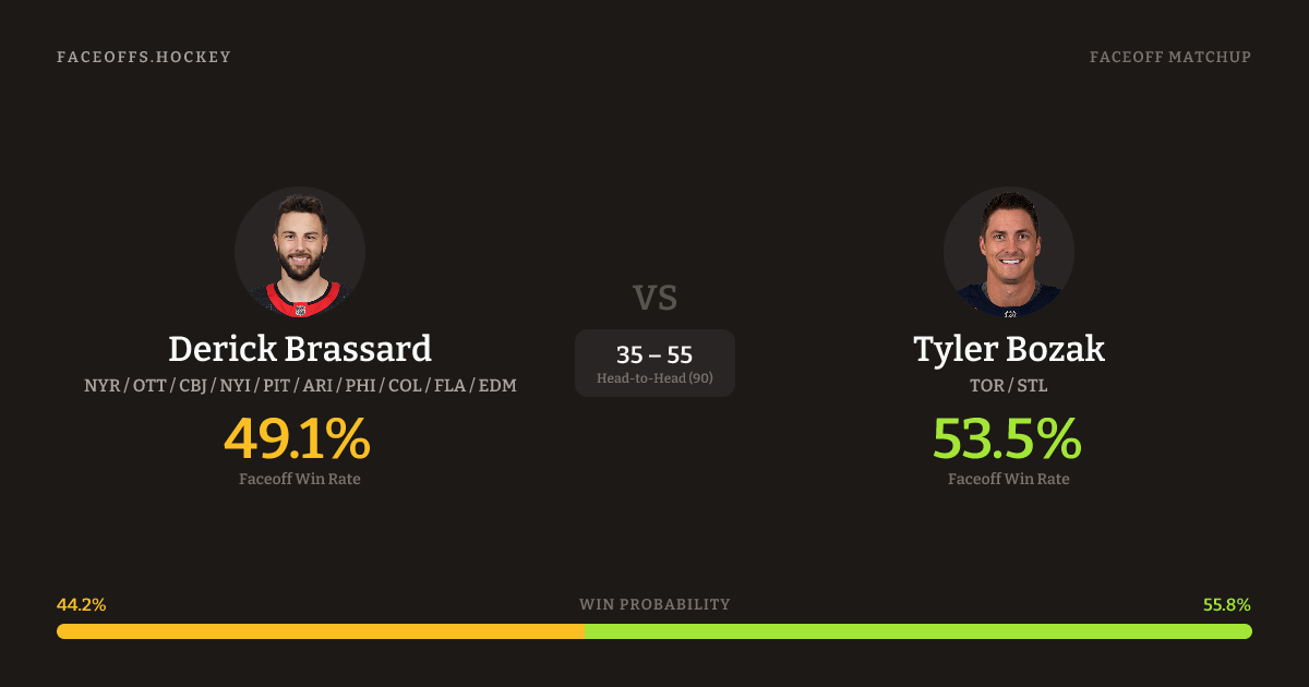 Derick Brassard vs Tyler Bozak — Faceoff Head-to-Head