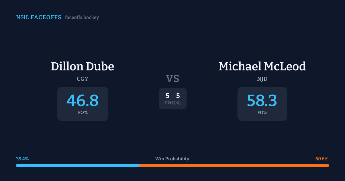 Dillon Dube vs Michael McLeod — Faceoff Head-to-Head