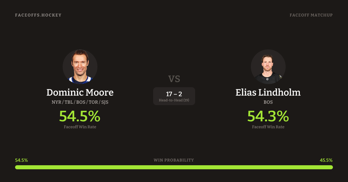 Dominic Moore vs Elias Lindholm — Faceoff Head-to-Head