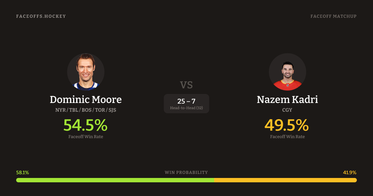 Dominic Moore vs Nazem Kadri — Faceoff Head-to-Head