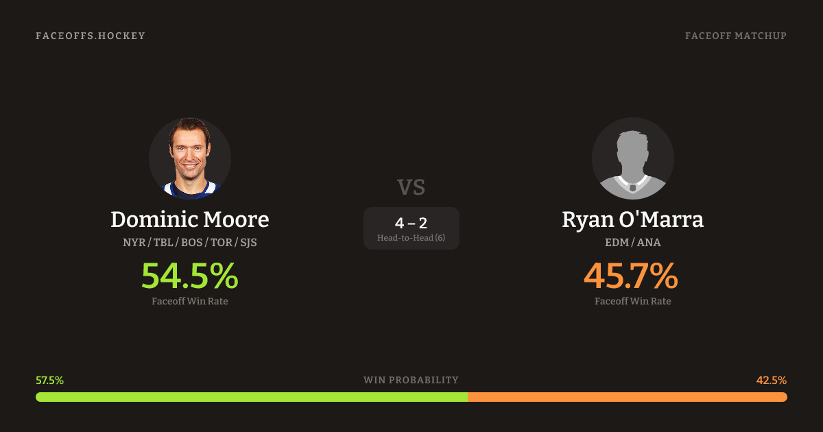 Dominic Moore vs Ryan O'Marra — Faceoff Head-to-Head