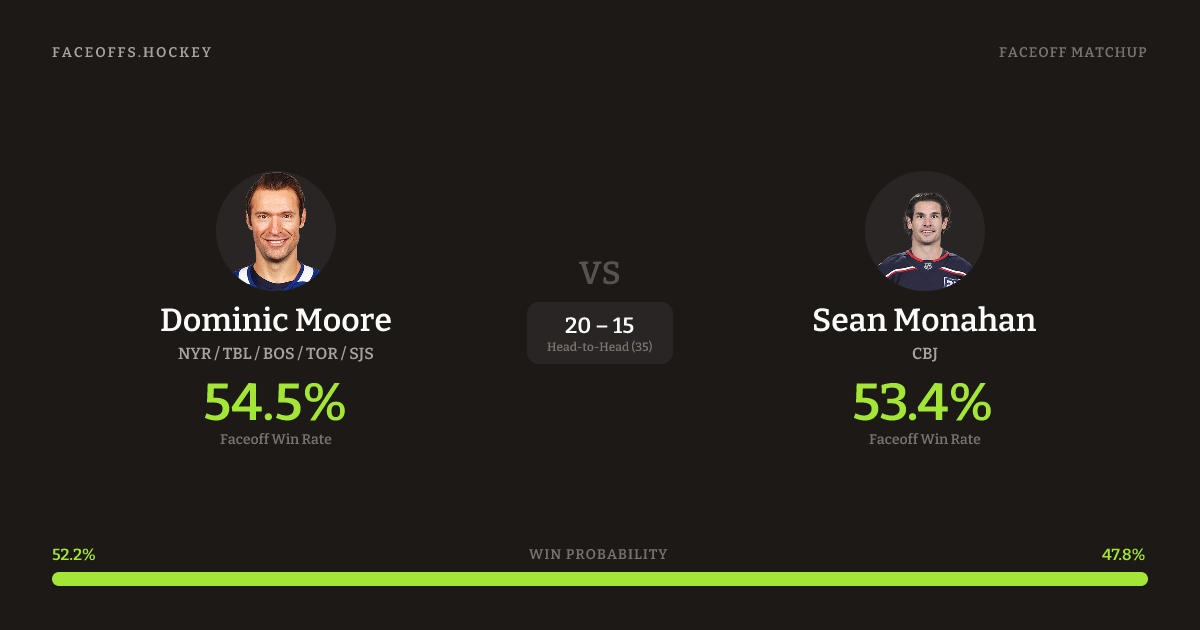 Dominic Moore vs Sean Monahan — Faceoff Head-to-Head