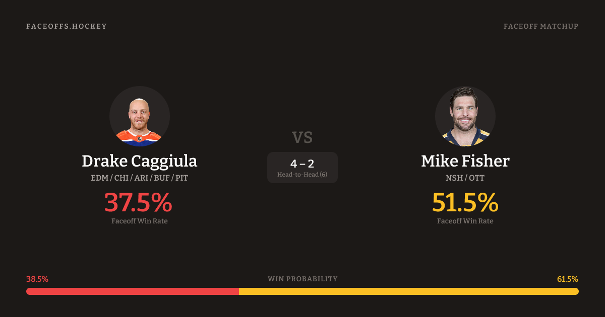 Drake Caggiula vs Mike Fisher — Faceoff Head-to-Head