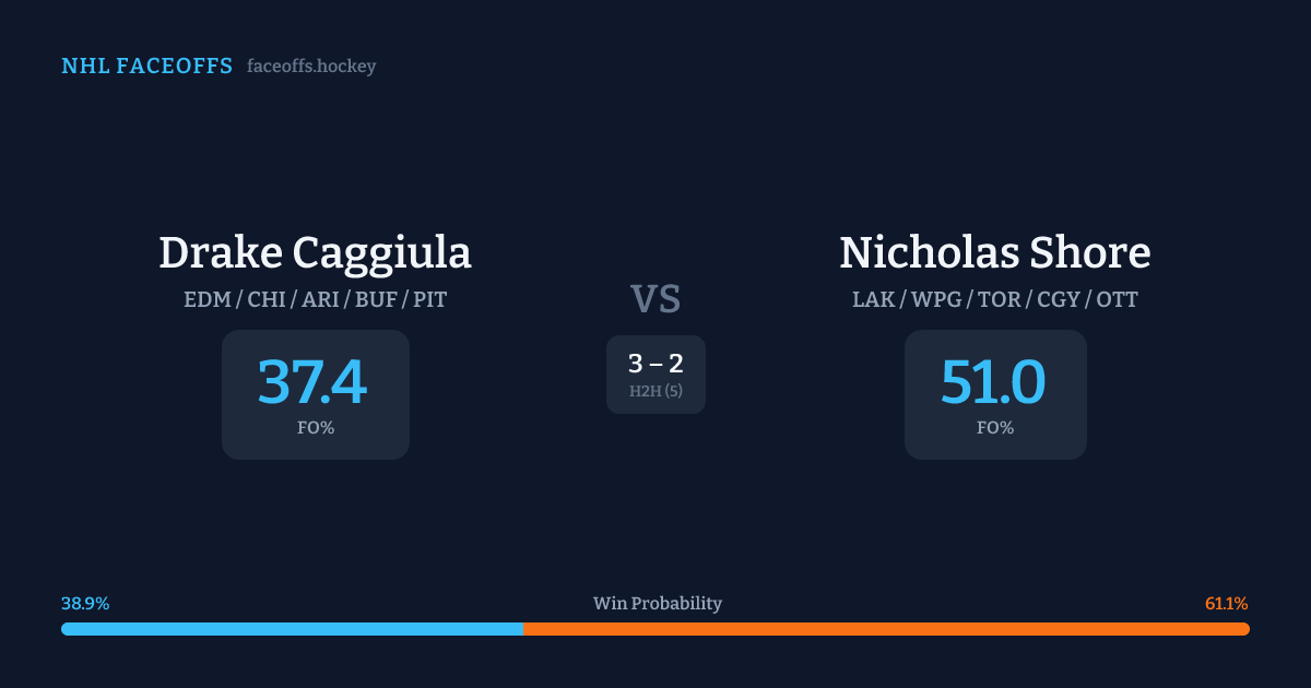 Drake Caggiula vs Nicholas Shore — Faceoff Head-to-Head