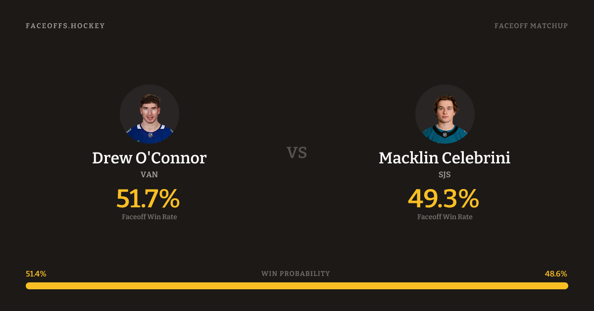 Drew O'Connor vs Macklin Celebrini — Faceoff Head-to-Head