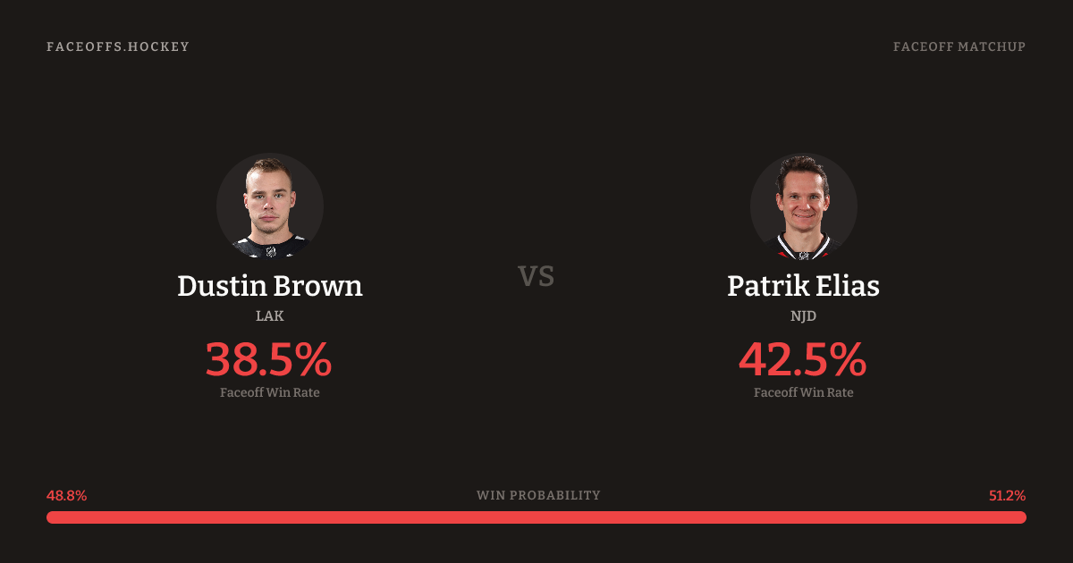 Patrik Elias holds a +4.0% FO% edge overall. Brown wins 37.7% vs left-shot opponents — Elias shoots left.