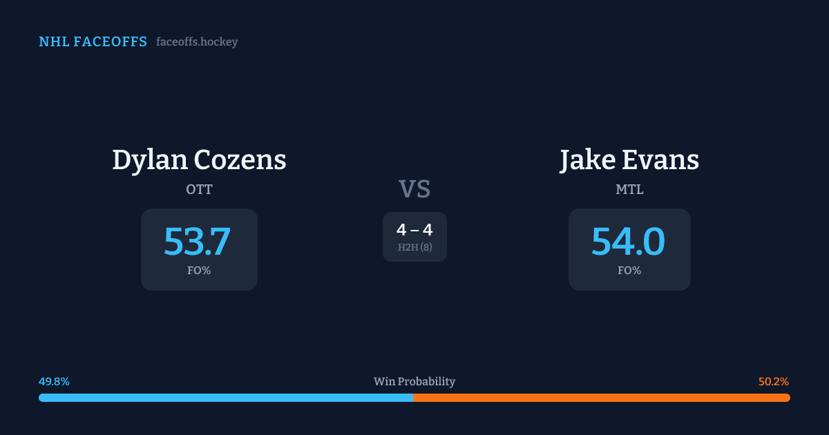 Dylan Cozens vs Jake Evans — Faceoff Head-to-Head