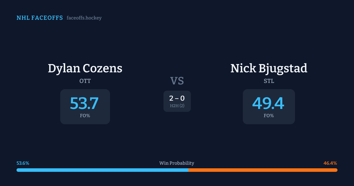 Dylan Cozens vs Nick Bjugstad — Faceoff Head-to-Head