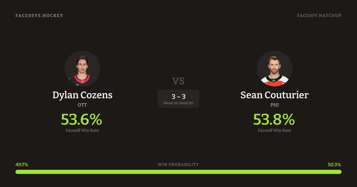 Dylan Cozens vs Sean Couturier — Faceoff Head-to-Head