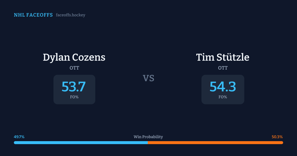 Dylan Cozens vs Tim Stützle — Faceoff Head-to-Head