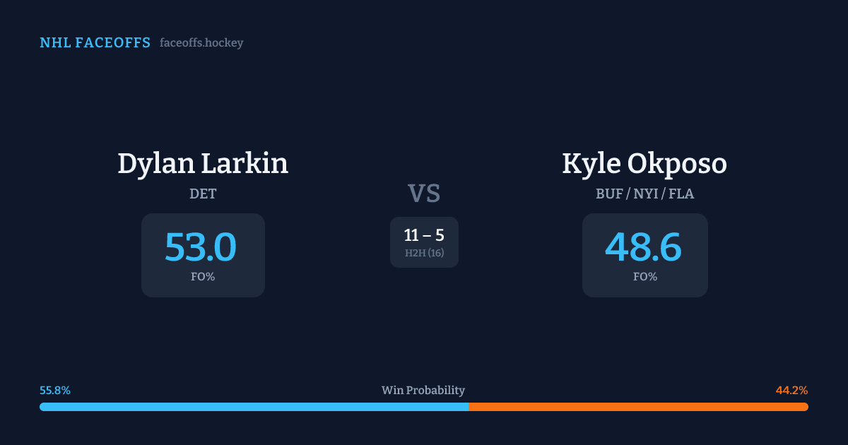 Dylan Larkin vs Kyle Okposo — Faceoff Head-to-Head