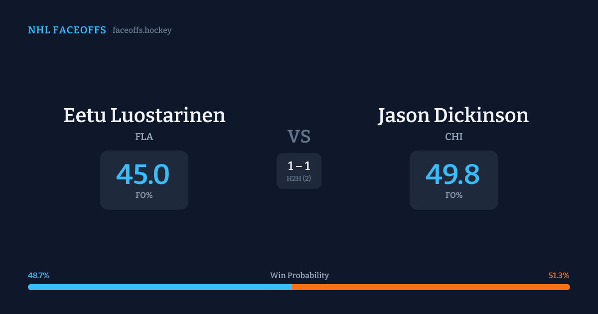 Eetu Luostarinen vs Jason Dickinson — Faceoff Head-to-Head