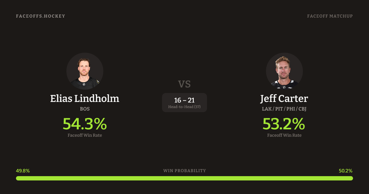 Elias Lindholm vs Jeff Carter — Faceoff Head-to-Head
