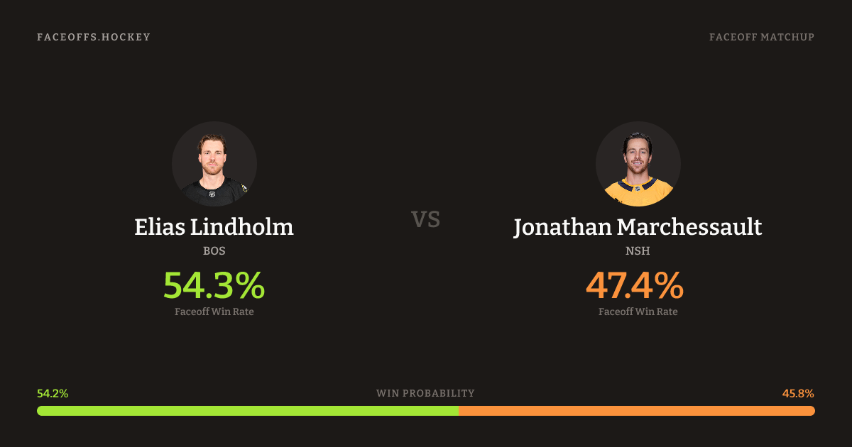 Elias Lindholm vs Jonathan Marchessault — Faceoff Head-to-Head