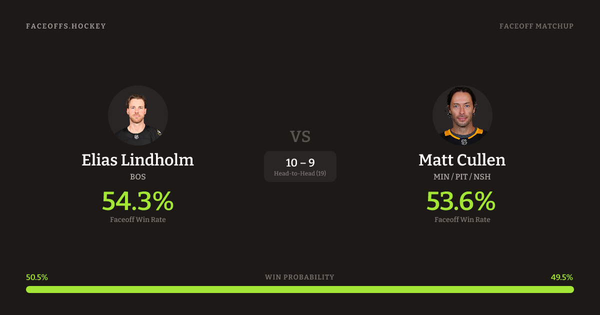 Elias Lindholm vs Matt Cullen — Faceoff Head-to-Head