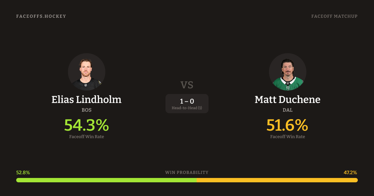 Elias Lindholm vs Matt Duchene — Faceoff Head-to-Head
