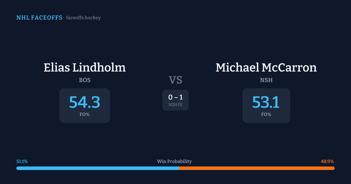 Elias Lindholm vs Michael McCarron — Faceoff Head-to-Head