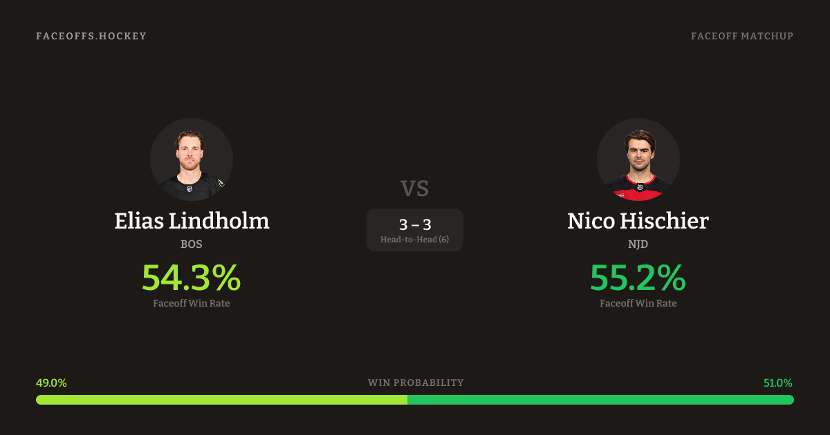 Elias Lindholm vs Nico Hischier — Faceoff Head-to-Head