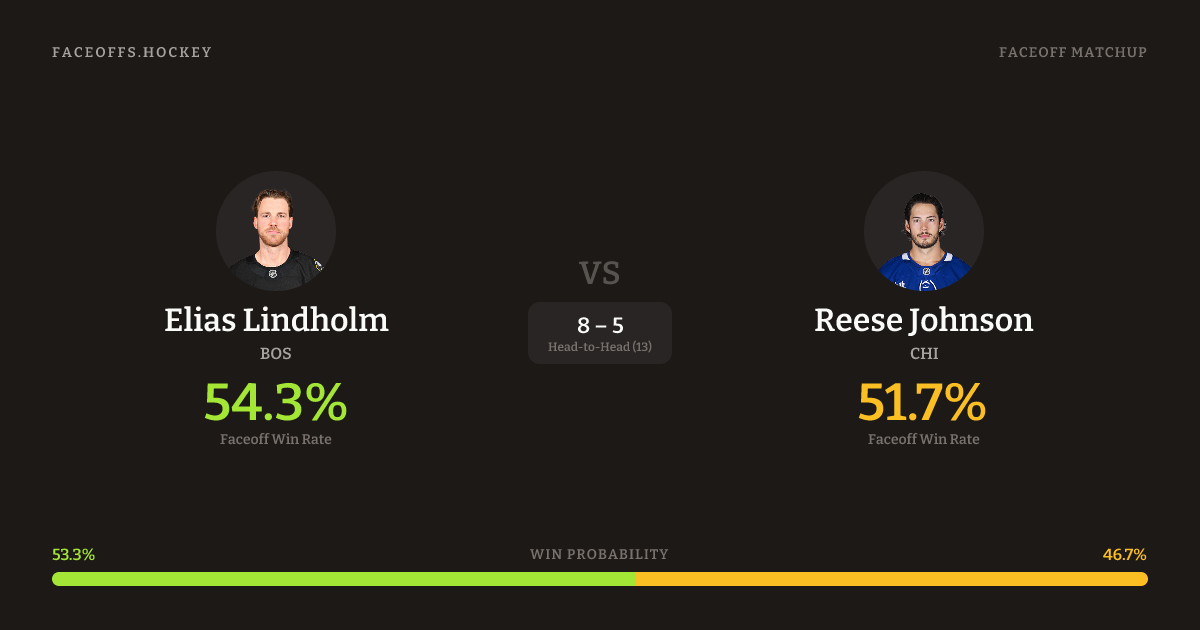Elias Lindholm vs Reese Johnson — Faceoff Head-to-Head