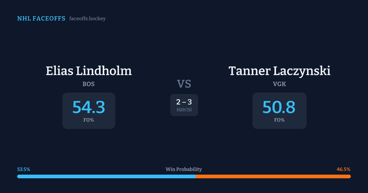Elias Lindholm vs Tanner Laczynski — Faceoff Head-to-Head
