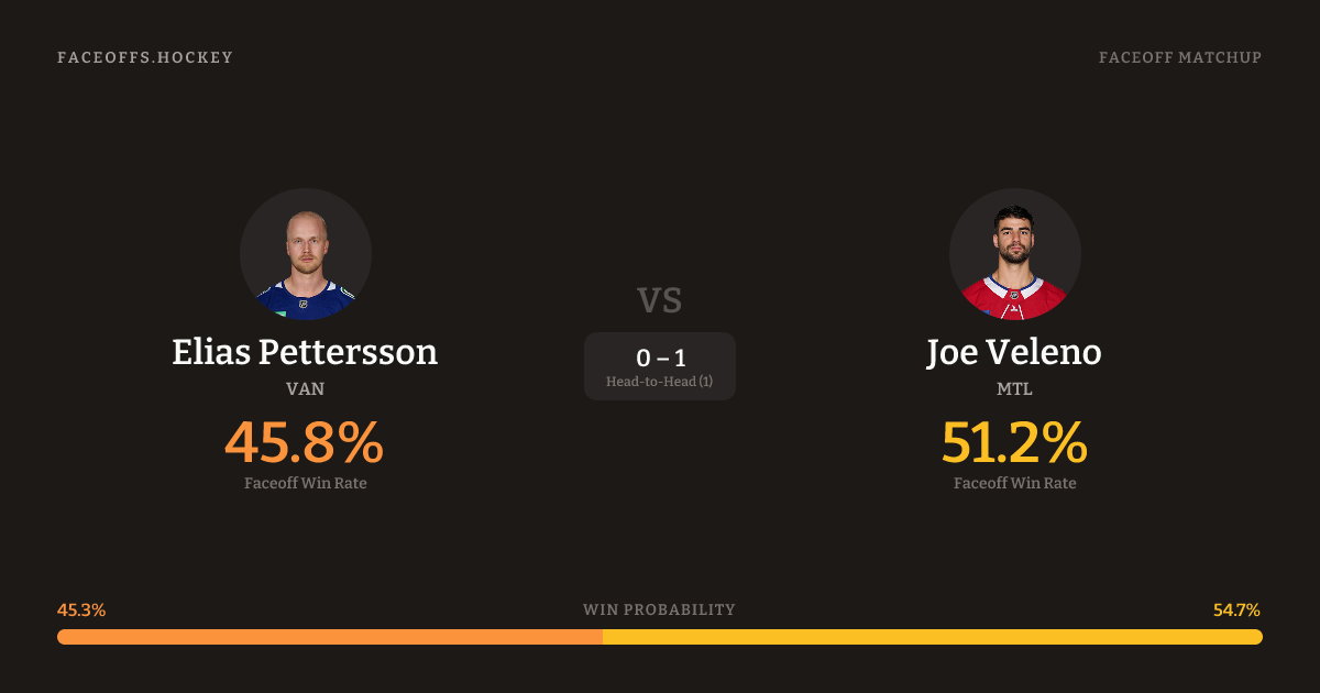 Elias Pettersson vs Joe Veleno — Faceoff Head-to-Head