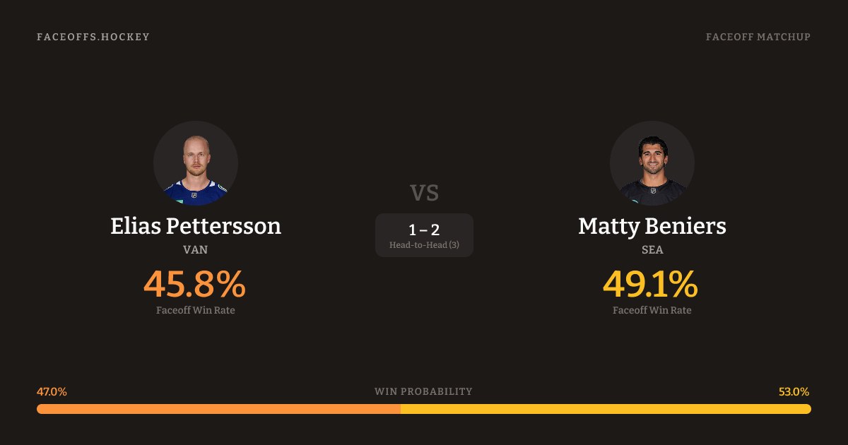 Elias Pettersson vs Matty Beniers — Faceoff Head-to-Head