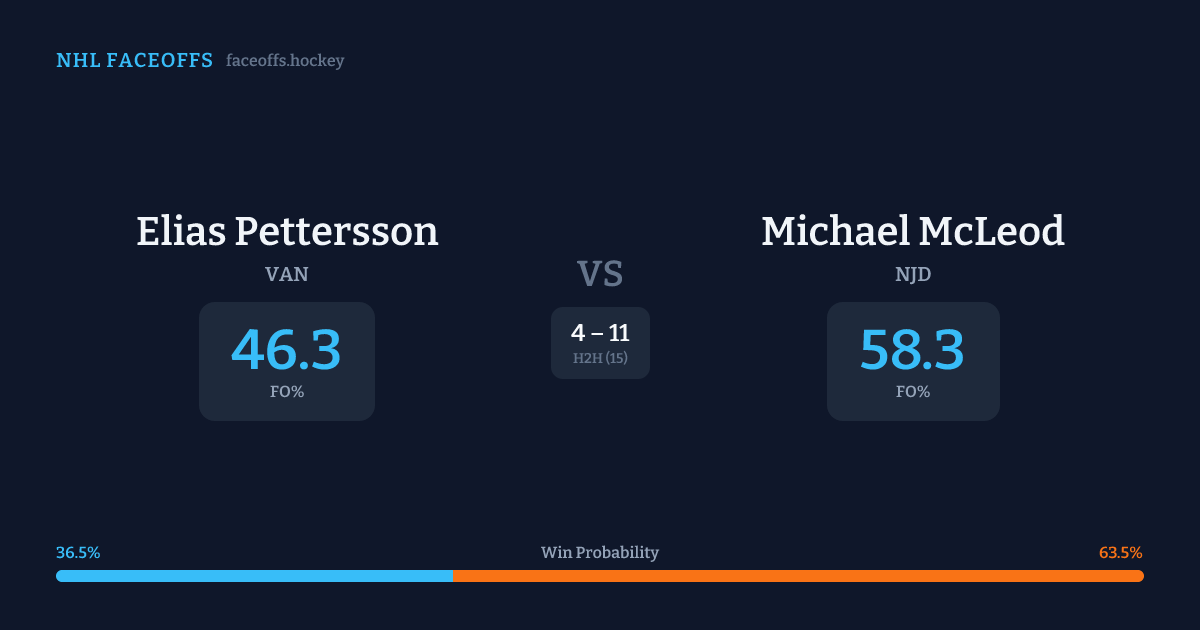 Elias Pettersson vs Michael McLeod — Faceoff Head-to-Head
