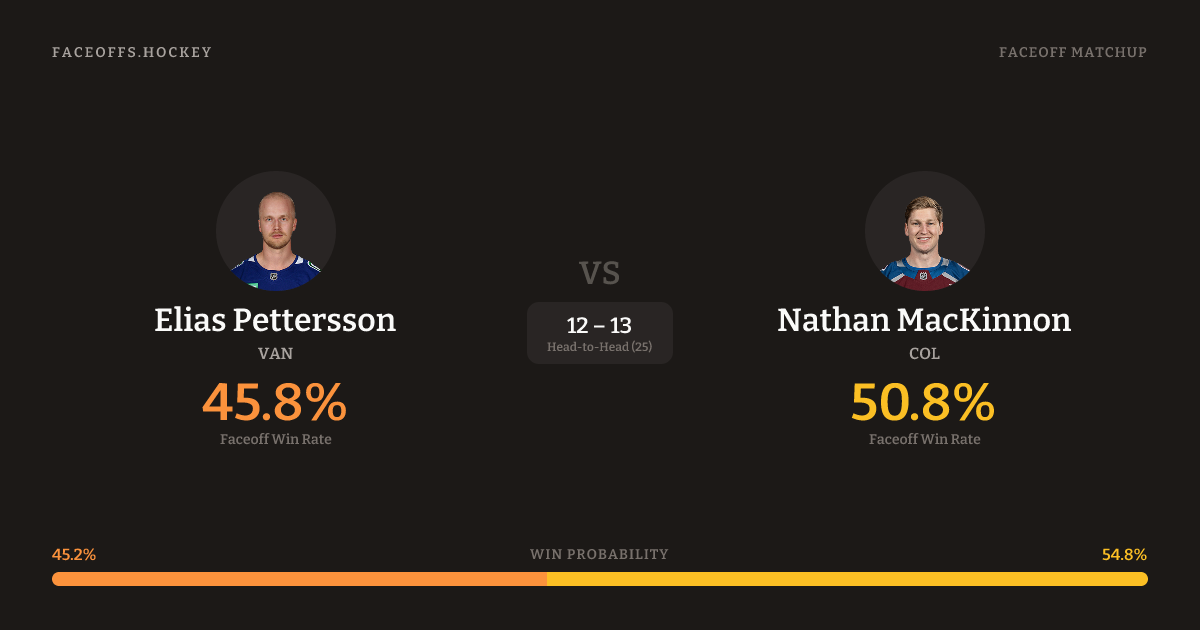 Elias Pettersson vs Nathan MacKinnon — Faceoff Head-to-Head