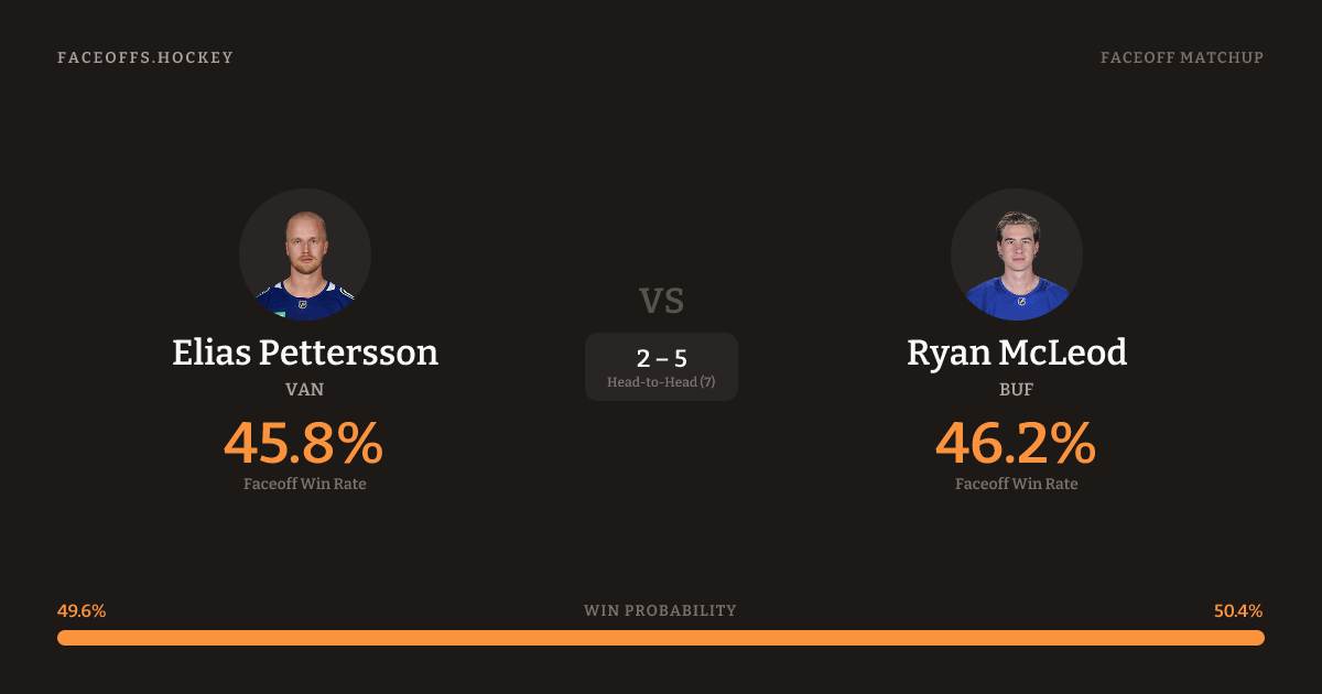 Elias Pettersson vs Ryan McLeod — Faceoff Head-to-Head