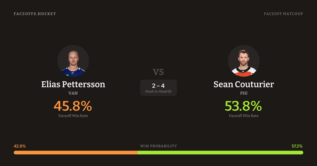 Elias Pettersson vs Sean Couturier — Faceoff Head-to-Head