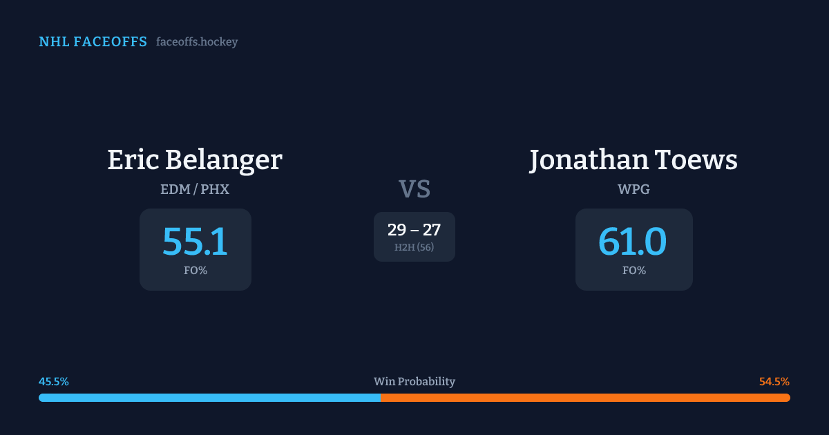 Eric Belanger vs Jonathan Toews — Faceoff Head-to-Head