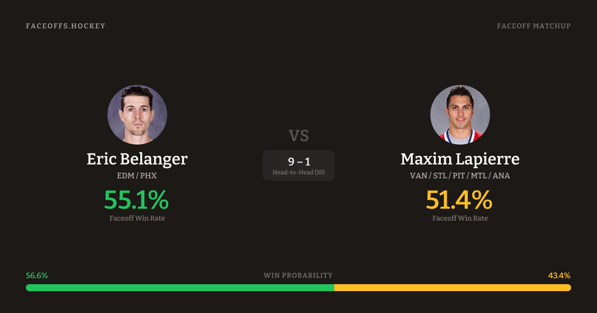 Eric Belanger vs Maxim Lapierre — Faceoff Head-to-Head