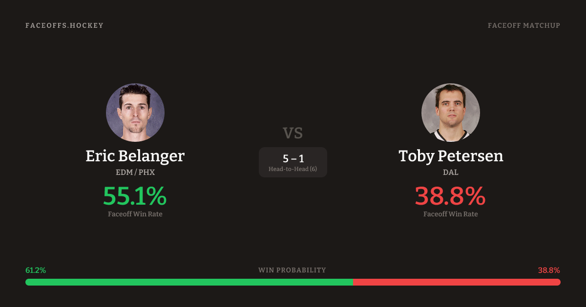Eric Belanger vs Toby Petersen — Faceoff Head-to-Head