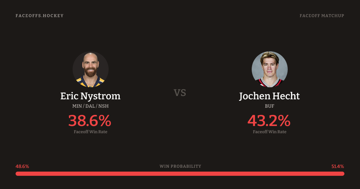 Jochen Hecht holds a +4.6% FO% edge overall. Nystrom wins 38.1% vs left-shot opponents — Hecht shoots left.