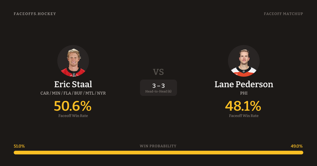 Eric Staal vs Lane Pederson — Faceoff Head-to-Head