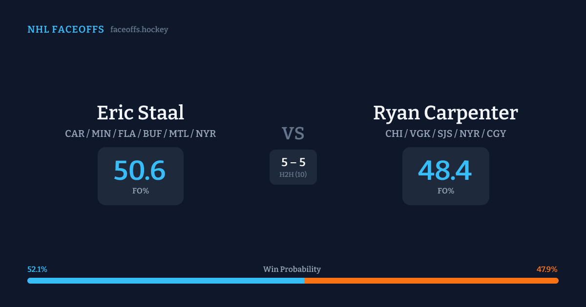 Eric Staal vs Ryan Carpenter — Faceoff Head-to-Head